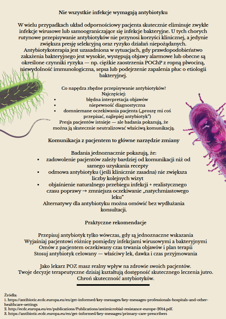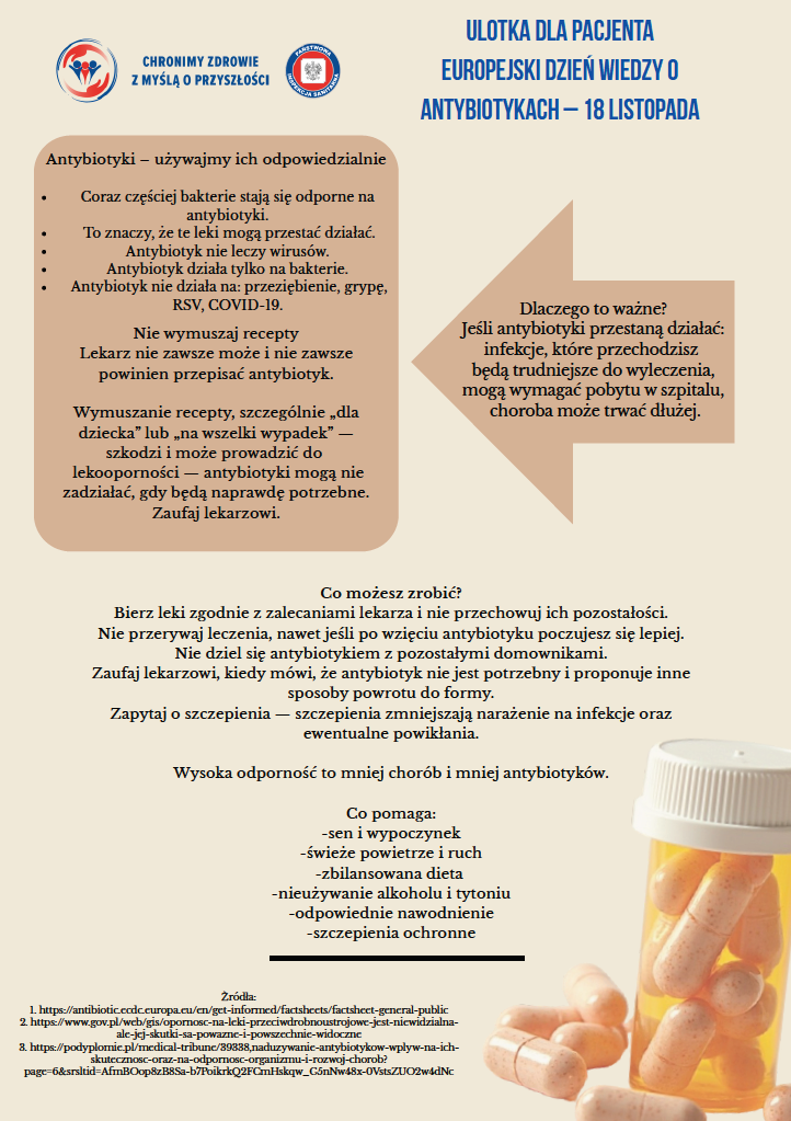 Więcej informacji na temat rozsądnego stosowania antybiotyków i profilaktyki zakażeń można znaleźć na stronie: antybiotyki.edu.pl