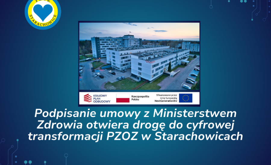 Powiatowy Zakład Opieki Zdrowotnej w Starachowicach podpisał umowę z Ministerstwem Zdrowia na realizację projektu pn. „Przyspieszenie procesów transformacji cyfrowej ochrony zdrowia poprzez dalszy rozwój usług cyfrowych w PZOZ w Starachowicach”. Tym samym rozpoczyna się kluczowy etap inwestycji, która znacząco unowocześni cyfrowe funkcjonowanie naszego szpitala.