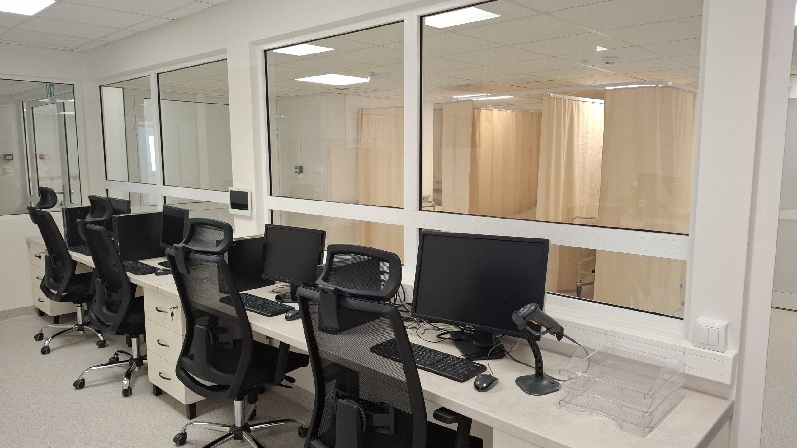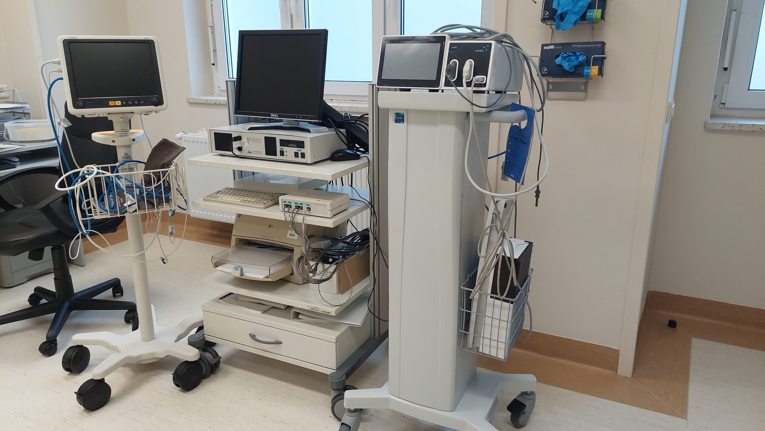 🔹 Oddział Kardiologiczny: tomograf komputerowy, system do 24-godzinnego EKG, aparaty EKG, lampy zabiegowe, fotele do pobierania krwi, meble medyczne, statywy, maceratory, skaner żył ze statywem i tablet diagnostyczny MESI.