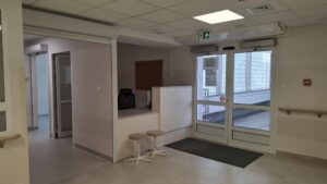 ✅ Część administracyjna, obejmująca gabinety lekarskie, gabinet kierownika, gabinet pielęgniarki koordynującej oraz sekretariat.
